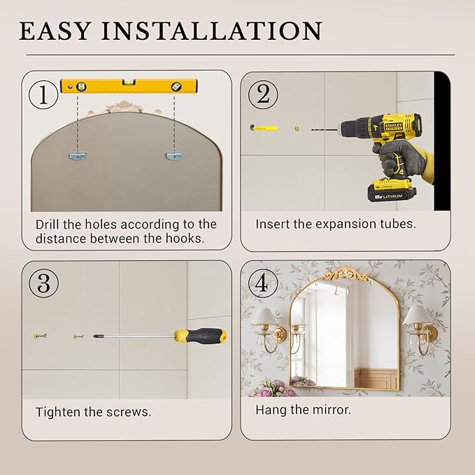 - Easy to Install: Effortlessly hang the Arched Mirror with the 2 hooks and included screws; In just a few easy steps, you can mount it securely on your wall, adding instant charm to any room