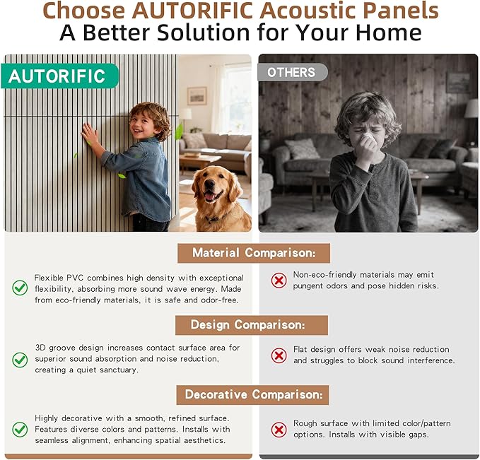 - Stylish Decorative Design: Our acoustic wall panels boast classic wood grain finishes, effortlessly combining sound absorption with elegant wall decor. A range of colors complements any interior style, and the wood wall panels can be easily cut into custom shapes for DIY wall art—adding unique character to your cozy space.