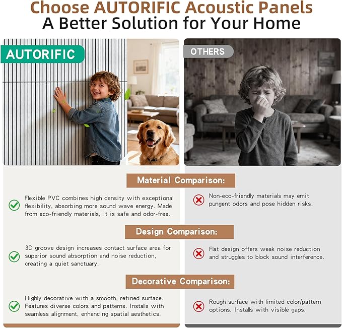 - Stylish Decorative Design: Our acoustic wall panels boast classic wood grain finishes, effortlessly combining sound absorption with elegant wall decor. A range of colors complements any interior style, and the wood wall panels can be easily cut into custom shapes for DIY wall art—adding unique character to your cozy space.