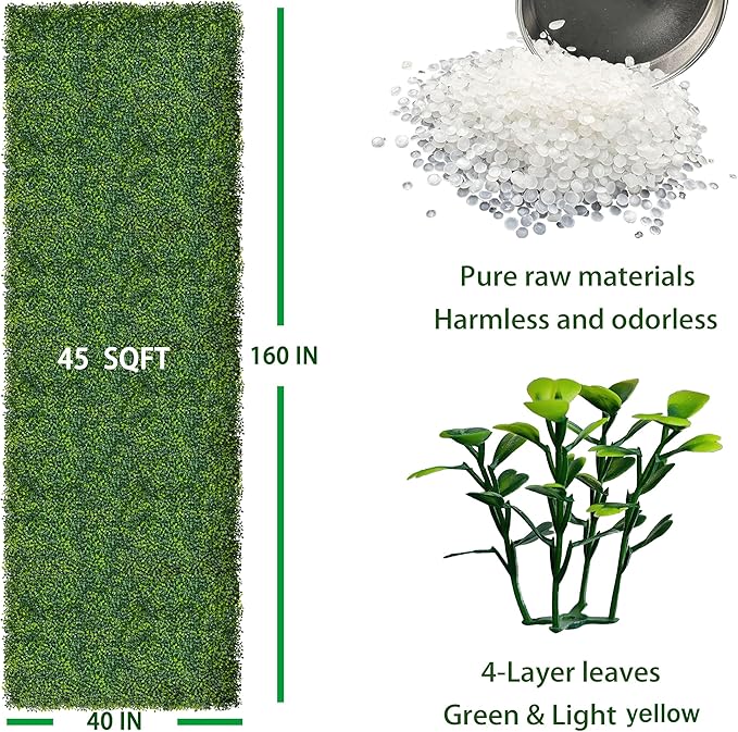 Artificial Boxwood Roll Panels: 40 X 160 in(45 sqft) UV-Anti Artificial Ivy Privacy Fence Wall Screen for Indoor Outdoor Green Grass Wall Decor & Ivy Fence Covering Privacy