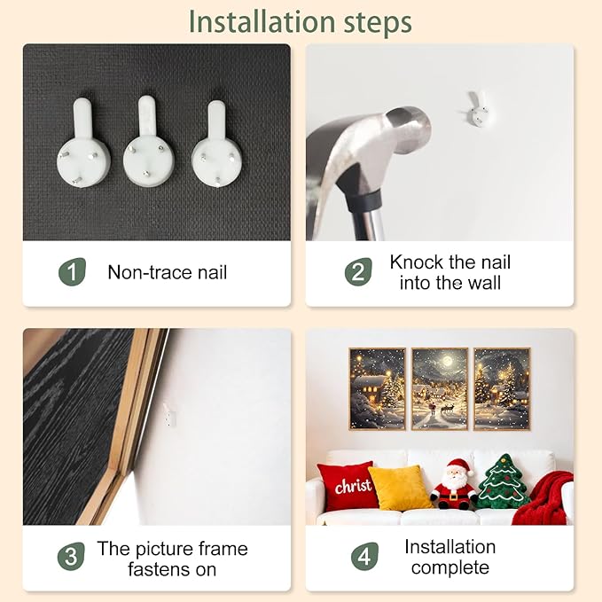 - EASY TO INSTALL: The Xmas Festive design wall art set includes three pieces, each measuring 16×24 inches (40×60cm). We provide a complete hanging kit, making it simple for you to hang the artwork as soon as it arrives. Just measure your wall space and effortlessly display the art to transform your space into a cozy holiday haven.