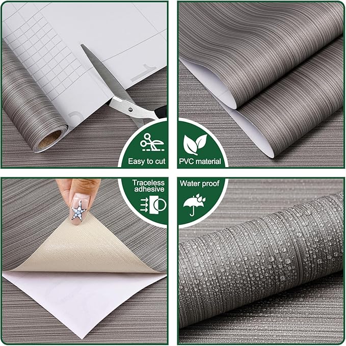- 【Versatile Uses】Our grasscloth textured wallpaper is suitable for smooth surfaces, tabletop and furniture refinishing, kitchen backsplashes, wall decor, kitchen countertops, bookshelves, and more.