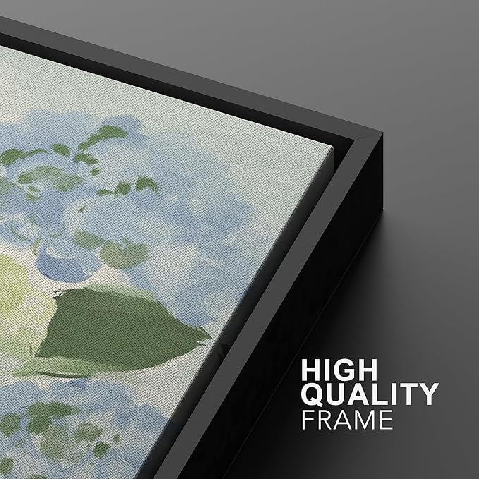 MUDECOR Framed Wall Art Print Set Blue Hydrangea Floral Botanical with Green Leaves Illustrations Modern Art Boho Decorative Colorful Chic for Living Room, Bedroom, Office - 24"x36"x3 Black