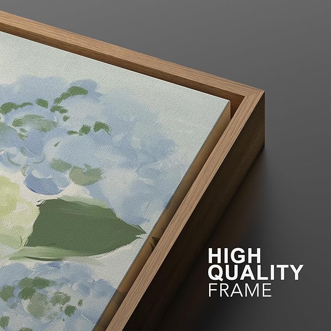 MUDECOR Framed Wall Art Print Set Blue Hydrangea Floral Botanical with Green Leaves Illustrations Modern Art Boho Decorative Colorful Chic for Living Room, Bedroom, Office - 24"x36"x3 Natural