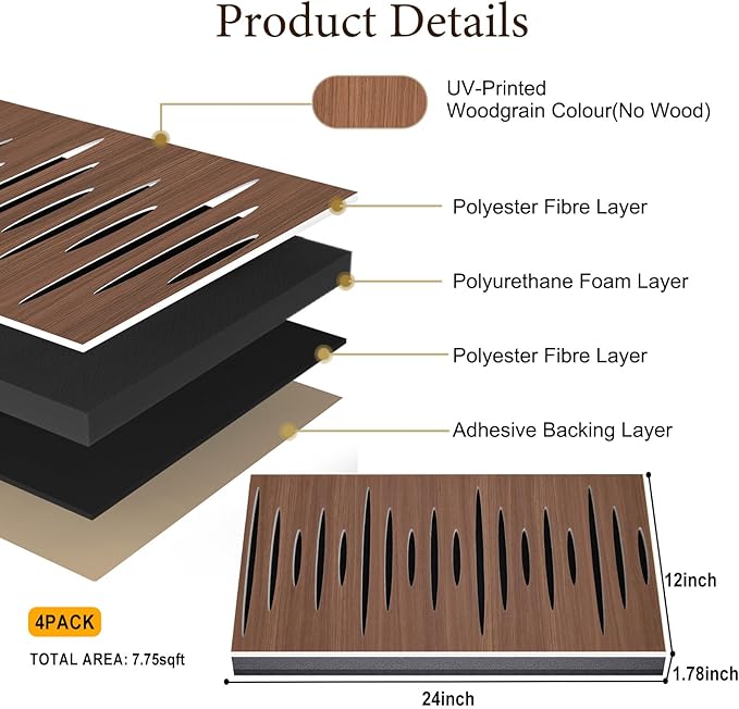 - 【Handmade and Size/Colour Specifications】 4 pack panels per package, each measuring 24×12×1.78". One package covers 7.7sqft. Available in 3 colour schemes and 9 perforated designs, offering diverse options. The lightweight material supports creative splicing, allowing you to refresh your space aesthetics with ease. Utilising intelligent CNC cutting technology, each panel is meticulously calibrated by experienced technicians to ensure millimetre-level precision in the three-layer material construction. The perforated edges are manually sanded and polished to prevent scratch risk while enhancing the layered effect of light and shadow. The defect rate is strictly controlled below 0.3%