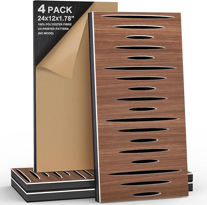 4Pack Acoustic Wall Panel Self-Adhesive Soundproof Foam Panels for Wall, 3D Perforated Tri-Layer Polyester Fiber Decorative Acoustic Insulation for Recording Studio, 24×12×1.78", Elliptical-Line
