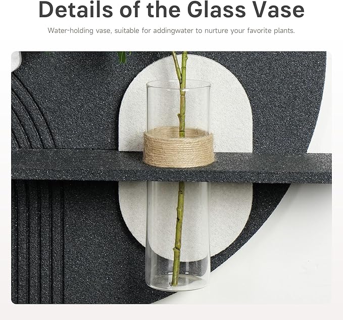 - [3D Wall Art with Shelf]: This 25.6x24-inch 3D wall art includes a built-in shelf, a glass vase (cup), and lifelike green plants. The clever combination of the vase and shelf adds both practicality and artistic charm to your home, allowing you to display small items while enjoying its calm and elegant design