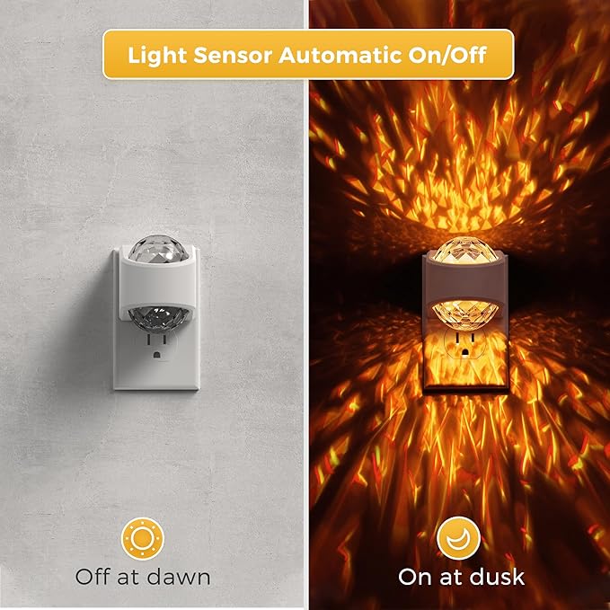- Versatile Starry Night Light: This plug in night light built-in double disco ball, projector emitting light both upwards and downwards, creating a magical ambiance perfect for kids'room, playroom, home decor,parties and gatherings. It transforms any space into a captivating starlit scene.