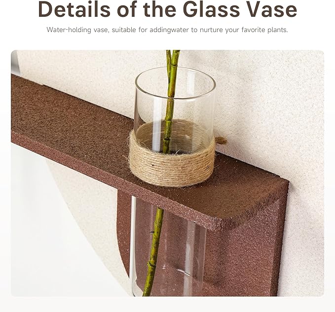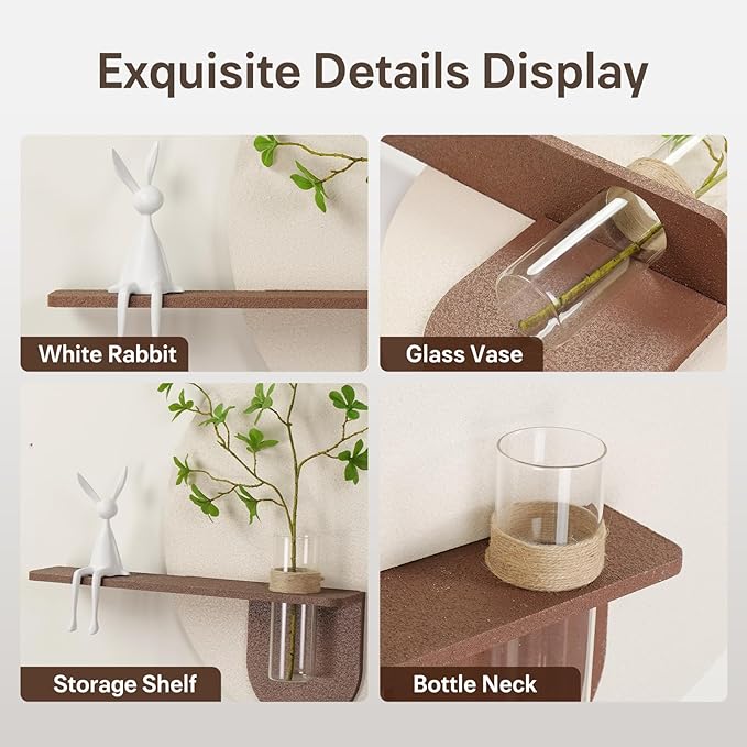 - [3D Wall Art with Shelf Décor]: This modern 3D round wall art features a shelf with a glass vase, greenery, and a cute bunny figurine, adding depth and warmth to your space