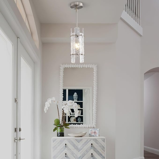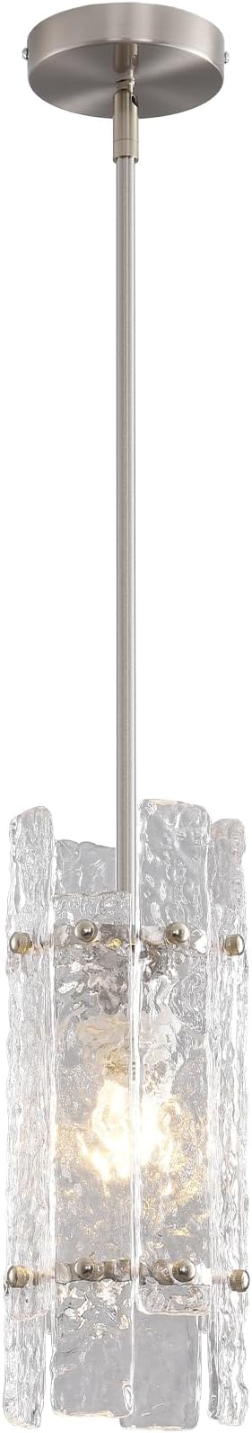 Modern Brushed Nickel Crystal Pendant Light for Kitchen Island, Luxury Mini Water Ripple Glass Chandelier Fixture, Round Adjustable Hanging Pendant Lighting for Dining Room Bedroom Hallway (1-Pack)