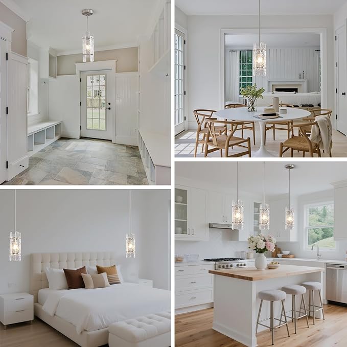 - 【Easy to clean & widely applicable】The glass is removable and can be removed and cleaned directly when cleaning, or you can gently wipe away dust with a little water and a clean towel. Silver small pendant light is perfect for kitchen island, dining room, living room, bedroom, hallway, loft and any living areas etc. This light fixtures ceiling hanging is the best choice for your home lighting decoration.
