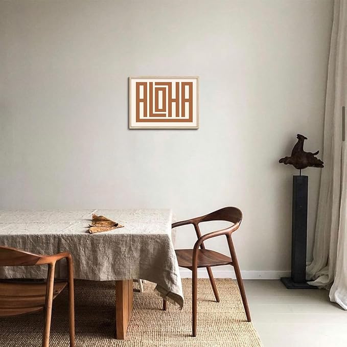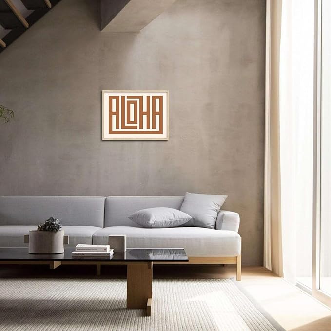 - Retro Aloha Framed Wall Art, Tropical Boho Vibe, Features bold "ALOHA" text in warm terracotta tones. Creates a relaxed, island - inspired atmosphere—ideal for living rooms, beach houses, or sunrooms.