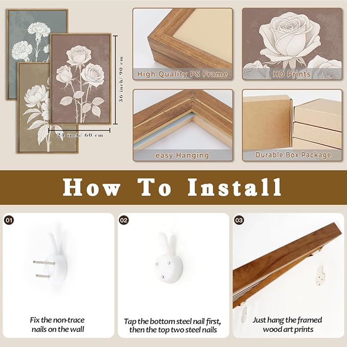 - 【Size】Each neutral floral wall art size is 24x36 Inches, extra large size for living room decor