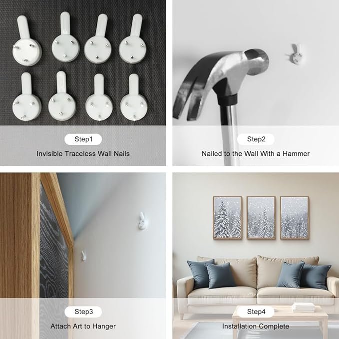 - 【Easy to Hang】16 “x24 ” neutral snow tree landscape frame set is easy to hang, ready to use, with metal hooks and non-marking nails. It takes only 5 minutes to finish hanging.