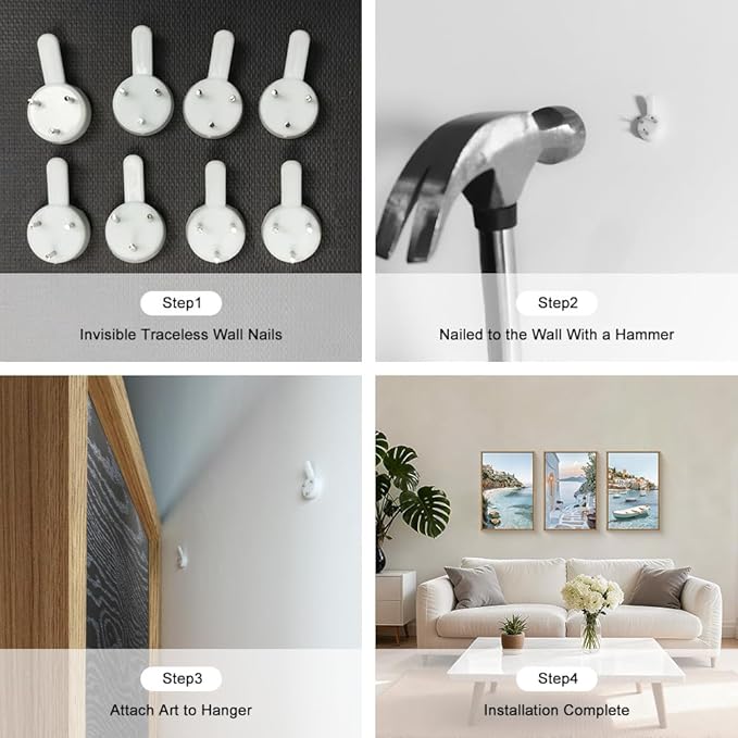 - 【Easy to Hang】16 “x24 ” aesthetic coast scene frame set is easy to hang, ready to use, with metal hooks and non-marking nails. It takes only 5 minutes to finish hanging.