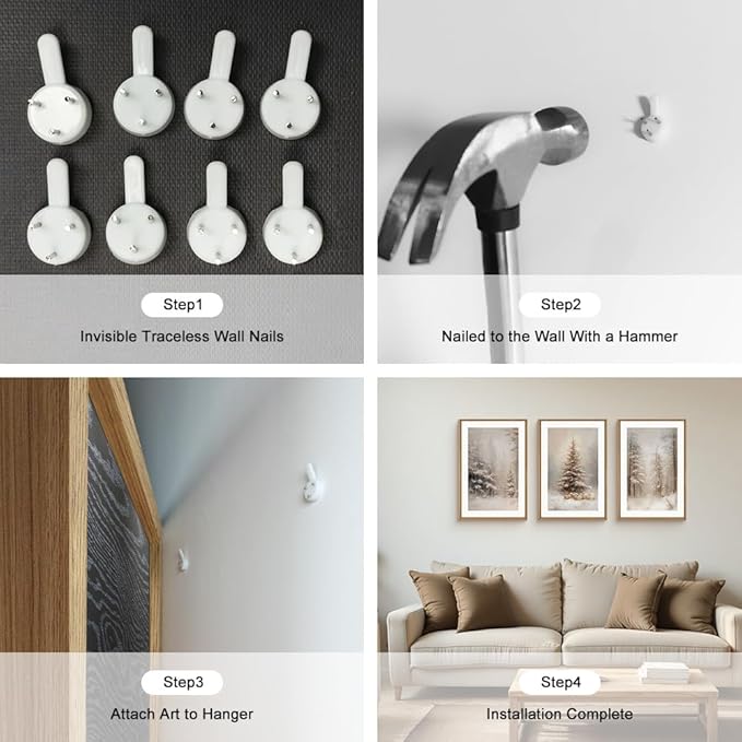 - 【Easy to Hang】16 “x24 ” neutral snow tree landscape frame set is easy to hang, ready to use, with metal hooks and non-marking nails. It takes only 5 minutes to finish hanging.