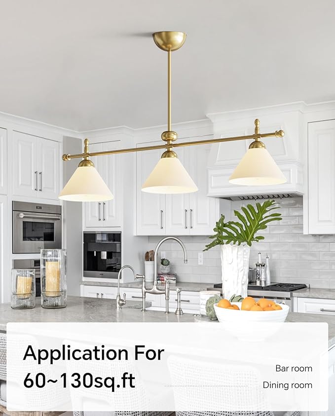 - Modern Design: Mid-century modern design and glamorous style meet in this eye-catching chandelier. It offering an extended range of illumination to effectively enhance the brightness of your island area, while milk glass shades diffuse light for a warm glow. The dining room light fixture is perfectly blends transitional and modern character