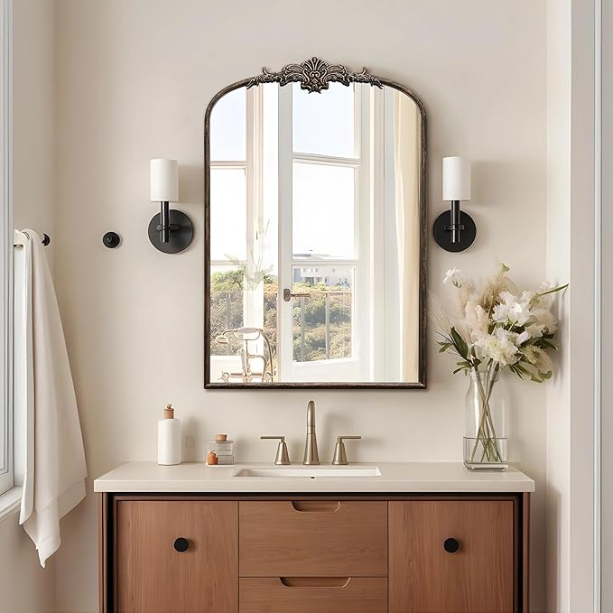- Exquisite French Aesthetic:Our Baroque arched mirror is available in a variety of sizes and colors. Beyond fireplaces and entryways, this mirror enhances bathrooms, dressing rooms, corridors, and even dining areas. Its ornate design adds depth and luxury to any space, making it a favorite among homeowners and stylists alike.