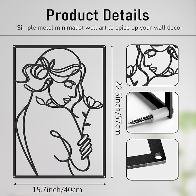 - Size and packaging: Minimalist single line true metal wall art metal mural is 22.5 inches x 15.7 inches, a set of 4 pieces. The packaging is safe, absolutely sturdy, rust proof, durable, and has smooth edges.