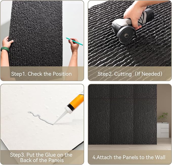 - Mounts in minutes: These 3d PU wall panel just use standard adhesives or glues (not included), and no professional tools needed. 3 steps, simply measure, cut(if needed), and adhere. It’s quickly, enjoy your product