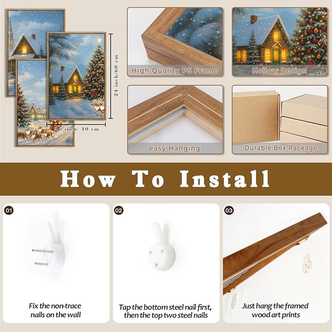 - 【Easy to Hang】This christmas wall art is 16x24 inches in size and comes with installation tools, making the process easy.