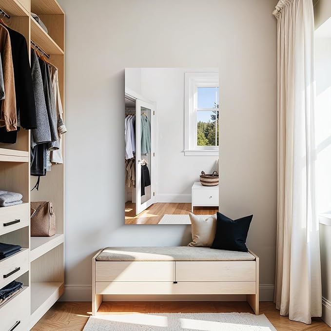 - SHATTERPROOF MIRROR : KOCUUY no-frame mirrors for wall are made of HD 3mm premium glass, which is lightweight and more eco-friendly than conventional mirrors. KOCUUY mirror is also upgraded with shatterproof feature which guaranteeing both secure handling.