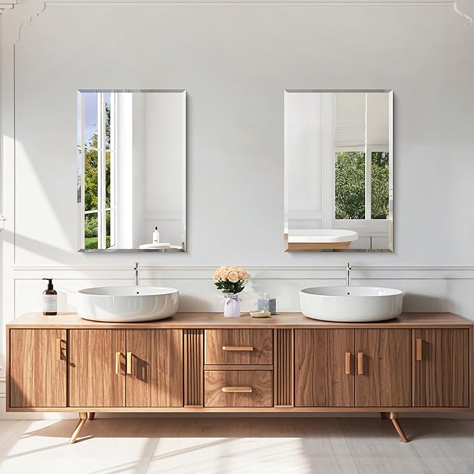 - PRECISION-BEVELED FRAMELESS MIRROR : Crafted with 1/4 inch (≈6mm) beveled edges, this mirror features precision-ground diamond brilliance. Unlike bulky edges, the slim bevel maintains structural integrity while enhancing visual continuity, creating seamless reflections without visual fragmentation.(Bevel width may vary slightly by batch.)