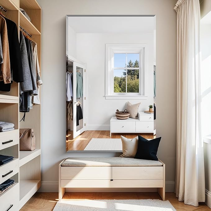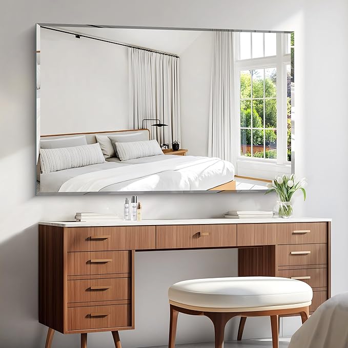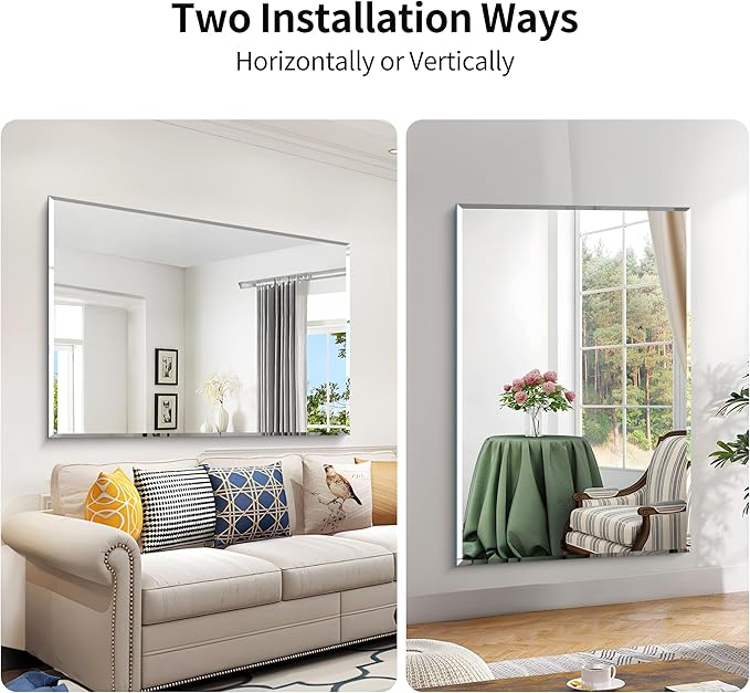 - PRECISION-BEVELED FRAMELESS MIRROR : Crafted with 1/4 inch (≈6mm) beveled edges, this mirror features precision-ground diamond brilliance. Unlike bulky edges, the slim bevel maintains structural integrity while enhancing visual continuity, creating seamless reflections without visual fragmentation.(Bevel width may vary slightly by batch.)