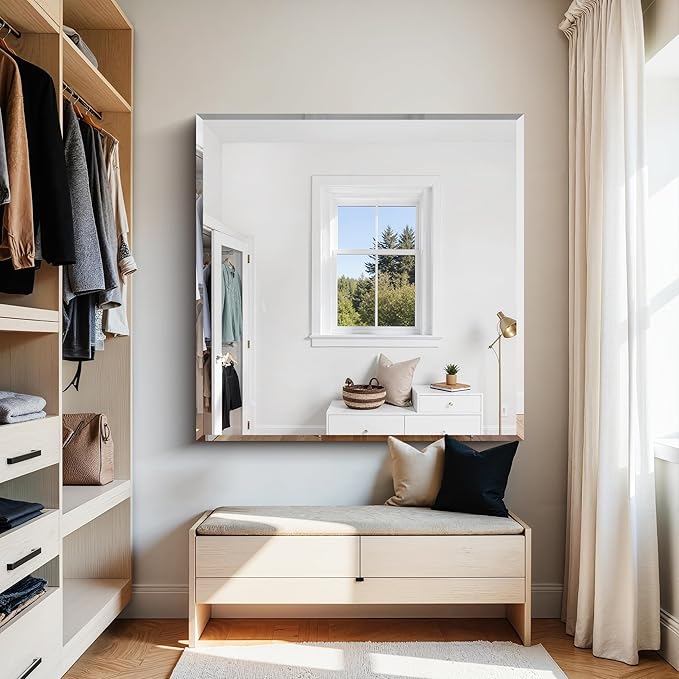 - PRECISION-BEVELED FRAMELESS MIRROR : Crafted with 1/4" (≈6mm) beveled edges, this mirror features precision-ground diamond brilliance. Unlike bulky edges, the slim bevel maintains structural integrity while enhancing visual continuity, creating seamless reflections without visual fragmentation.(Bevel width may vary slightly by batch.)