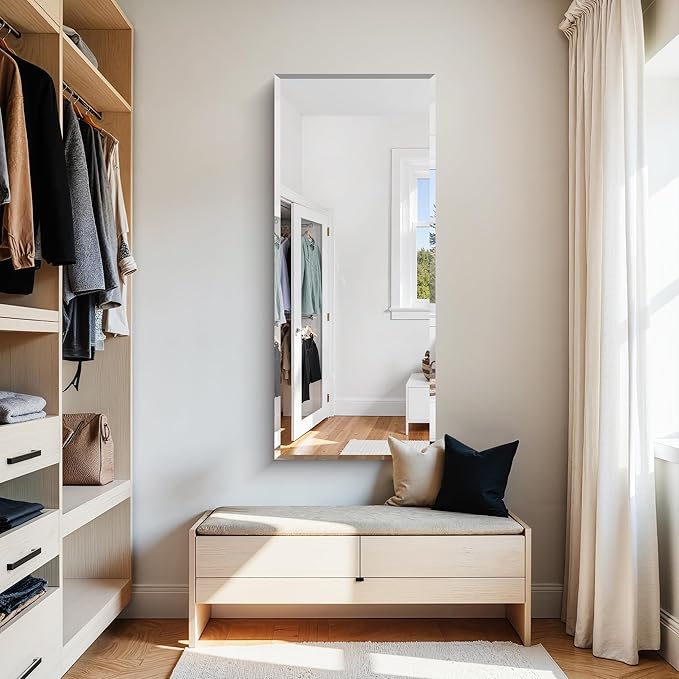 - PRECISION-BEVELED FRAMELESS MIRROR : Crafted with 1/4" (≈6mm) beveled edges, this mirror features precision-ground diamond brilliance. Unlike bulky edges, the slim bevel maintains structural integrity while enhancing visual continuity, creating seamless reflections without visual fragmentation.(Bevel width may vary slightly by batch.)