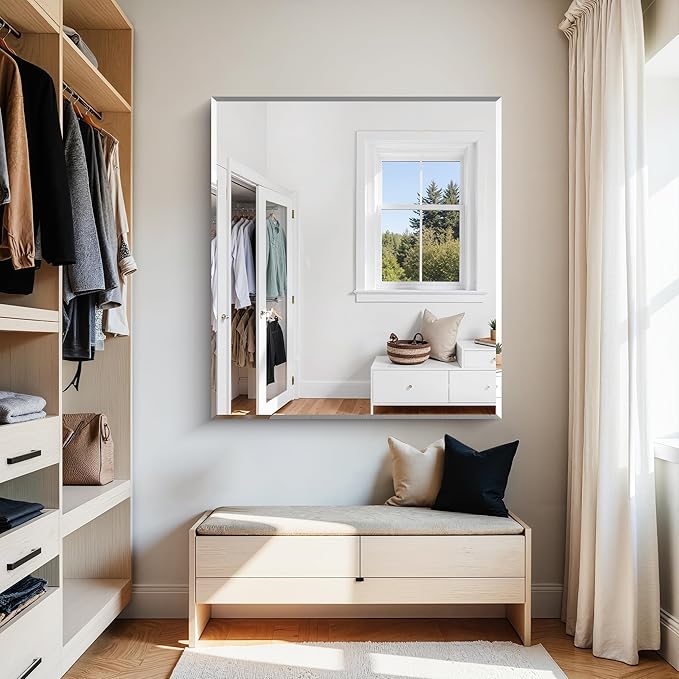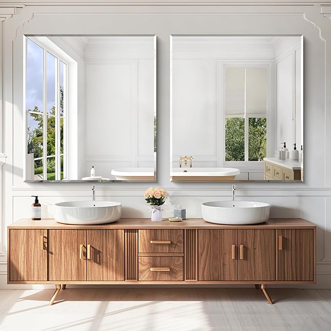 - PRECISION-BEVELED FRAMELESS MIRROR : Crafted with 1/4 inch (≈6mm) beveled edges, this mirror features precision-ground diamond brilliance. Unlike bulky edges, the slim bevel maintains structural integrity while enhancing visual continuity, creating seamless reflections without visual fragmentation.(Bevel width may vary slightly by batch.)