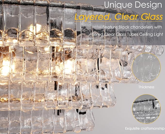 - Premium Clear Glass: Features hand-polished crystal-clear glass panels/bubbles (no smoke tint), offering 95%+ light transparency for brighter, distortion-free illumination with the room decoration to create an elegant and luxurious atmosphere.The drum chandelier for living room,dining room.