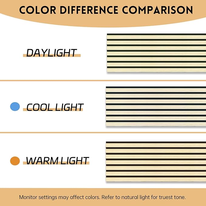 - Versatile Uses & Sample Option: Perfect as wall decor in living rooms, bedrooms, dining areas, and more. Unsure about the color? Order our sample kit first to see how these wood slat wall panels look in your own space before making your final decision.