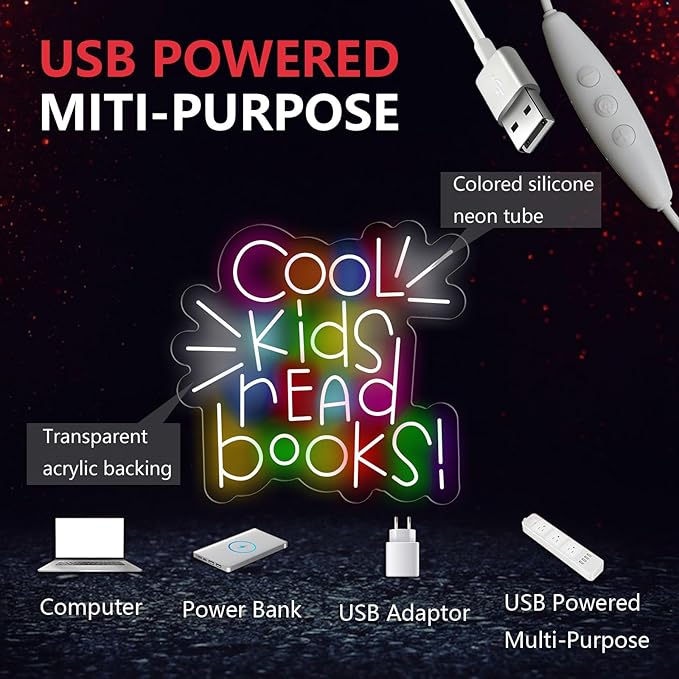 - Amazing Design:Cool Kids Read Books neon sign is a splendid injection of positivity into your reading room decor. Read signs for classroom with multicolour glow emanates an inspiring message, setting the mood for relaxation and tranquility.