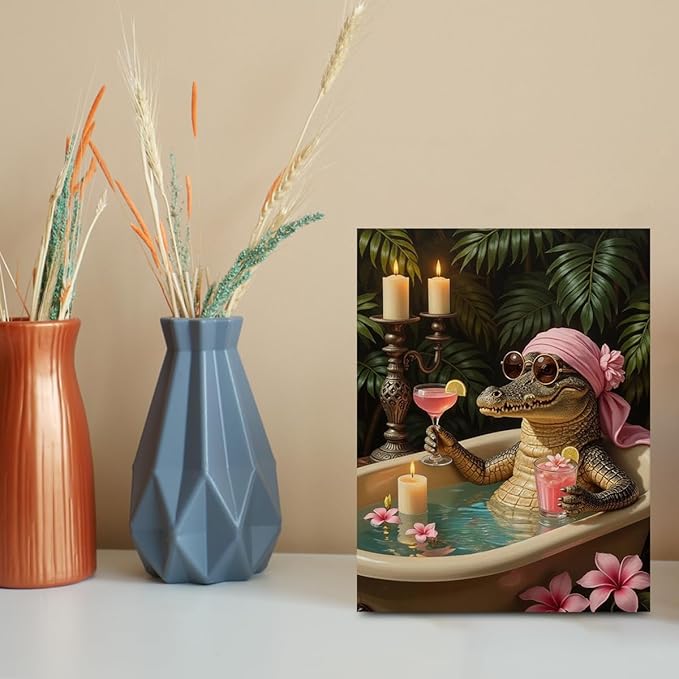 Crocodile Wall Art, 11.4x15in Funny Toilet Framed Art Paintings Wall Decor Unique Animal Lover Gifts Alligator Bathroom Picture for Living Room Bathroom Farmhouse Kitchen Decor