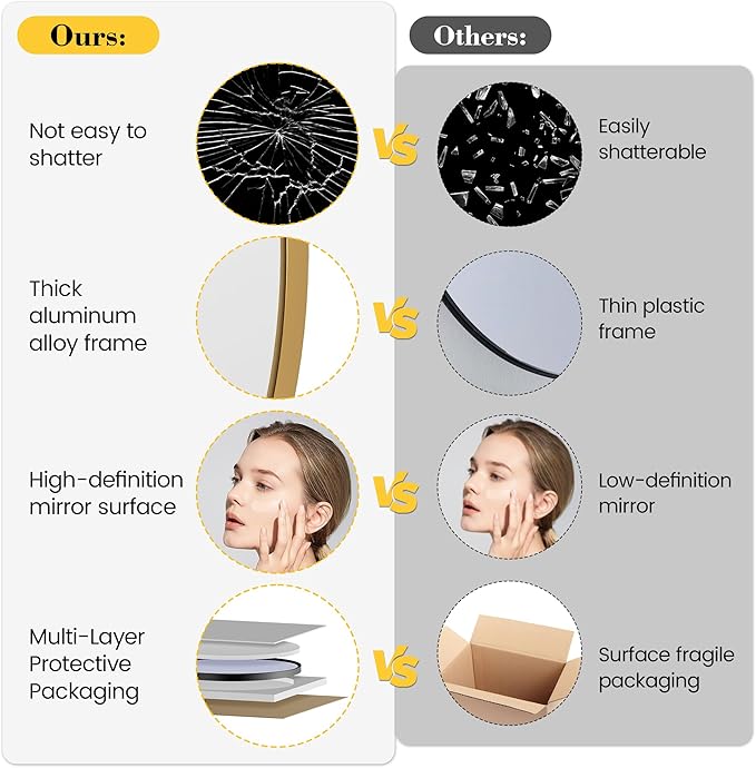 - 【Reliable & Safe】Our commitment to quality includes both form and safety. Each IDEALHOUSE mirror is encased in protective, drop-tested Styrofoam packaging, ensuring its safety. Also, our 24/7 customer service team is ready to assist with refunds or replacements should any issues arise upon arrival.