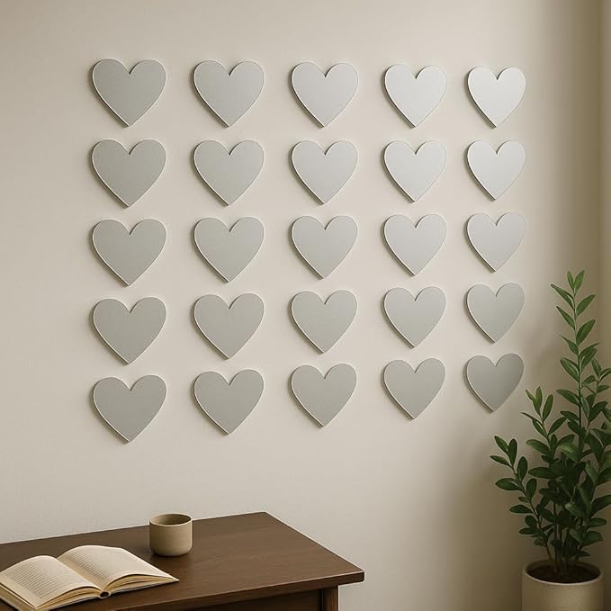 BugyBagy Acrylic Wall Mirror Collection – Silver Plexiglass Decorative Mirrors – Modern Peel-and-Stick Shatter-Resistant Wall Décor for Nursery, Bedroom & Living Room (1, 12PCS Hearts)