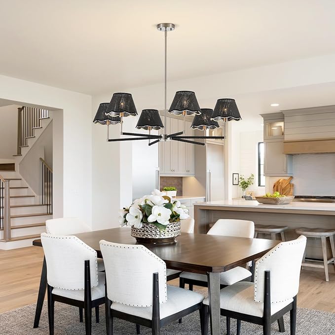 - Elyccupa's innovative masterpiece: Our designers have experimented with using real rattan dyed black, paired with a modern metal finish in brushed nickel, making the entire modern chandelier appear more high-end. It truly blends the ruggedness of natural rattan with a modern style, making it even more suitable for contemporary home design. If you are someone who pursues fashion and shares the innovative spirit of Elyccupa, this contemporary pendant light undoubtedly represents your personality!