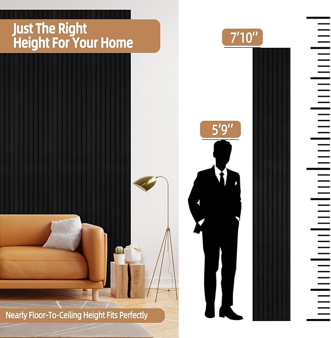 Acoustic Wood Slat Wall Panels - Ebony Soundproof Paneling for Interior Wall Decor, Modern Design, 94" x 12", 4-Pack