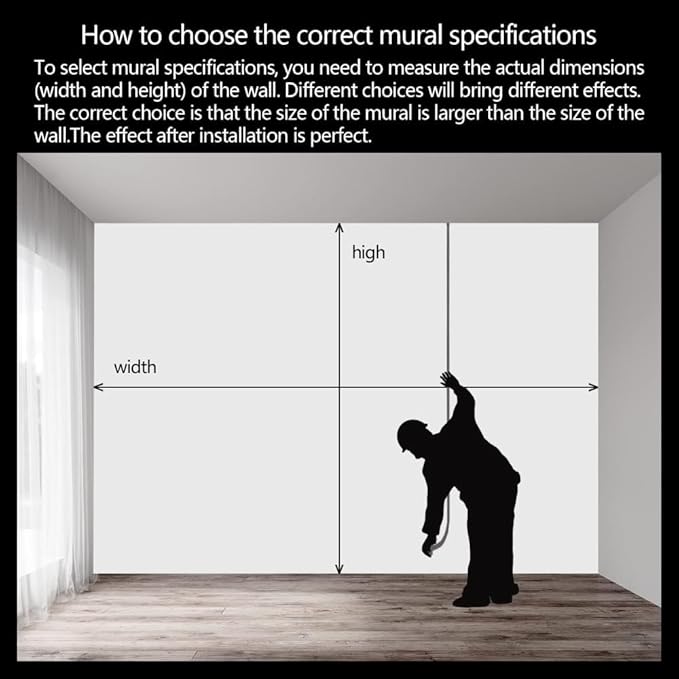 - SIZE: The overall dimensions of the mural are 196"(W) x 125"(H). For ease of installation, the mural is cut into five pieces.(If you need DIY customized pattern and size, please click to contact us.)