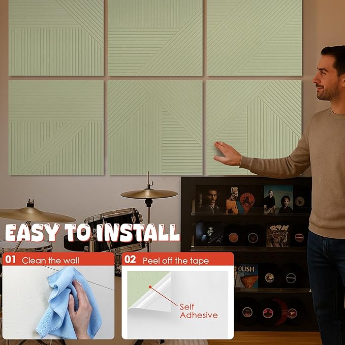 - ♻️【Upgraded Self -Adhesive】Super easy to install! With the self-adhesive design, you just need to tear off the top liner on the back and stick the sound proofing panels to the wall.