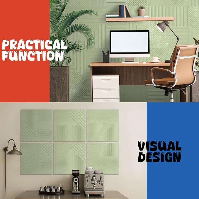 - ♻️【Upgraded Acoustic panels】Be different from other art acoustic panels,We have upgraded their acoustic performance and their appearance,Made to look like raw wood.Our acoustic wall panel uses are made with UV printing technology have vertical strips in the form of sound-absorbing panels.they absorb unnecessary sound while playing a good role in decorating the wall surface.Includes 6 pieces,The size of each one is 24 x 24 x 0.4 inches.the larger area can disperse more noise and Eliminate Echoes.