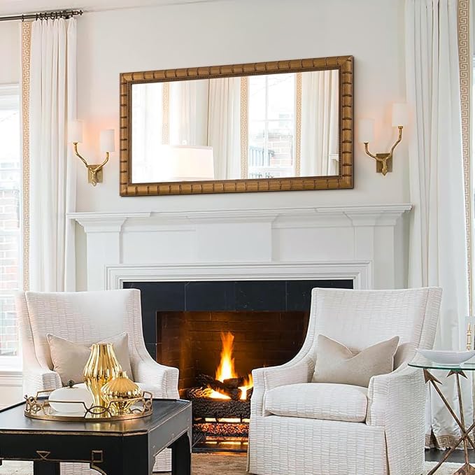 - Warm Gold Retro Vibe: The decorative wall mirror has a retro warm gold tone. It works in living rooms, as an entryway mirror, and more—matches American, vintage, luxury styles seamlessly.