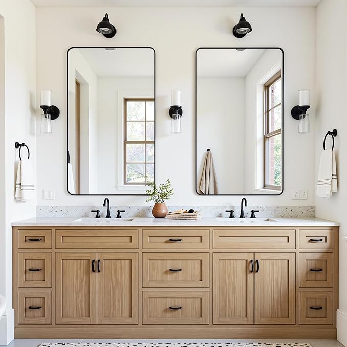 - HD-imaging: ANTOK bathroom vanity mirror is designed with HD float glass to deliver a clear reflection with no distortion. clear lines, simple modern design