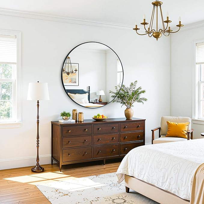 Antok Wall Mirror, 24"x24" Bathroom Vanity Mirror, Anti-Rust HD Tempered Glass, Wall Mounted Mirrors for Living Room, Entryway, Black Frame, Round