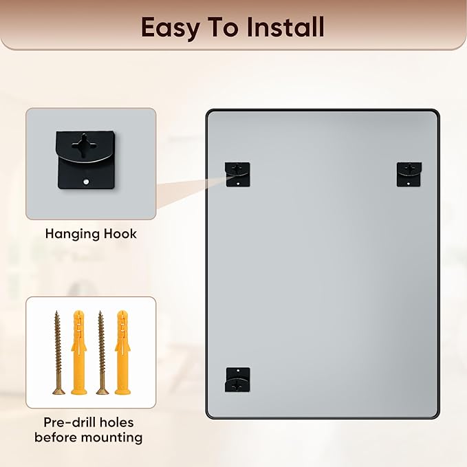 - Secure & Easy Hanging Option: The wall bracket is sturdy enough to support the weight of the mirror and ensure the mirror stay more securely and sturdily against the wall. Very easy to install. (mounting hardware are included for hanging)