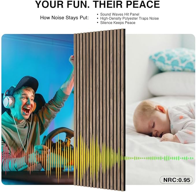 - [Superior Sound Absorption]:Engineered with dense recycled PET black backing, these acoustic wood wall panels dramatically reduce echo and ambient noise. Transform your home office, living room or theater into a peaceful sanctuary with our sound panels for walls