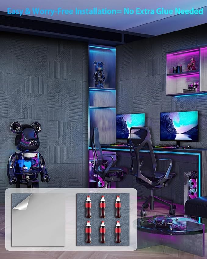 - Easy installation: Acoustic panels sound absorbing with self-adhesive backing allow for quick, tool-free installation on most smooth surfaces. Set up the sound proof panels by simply removing the protective film and securing them firmly to walls, or doors