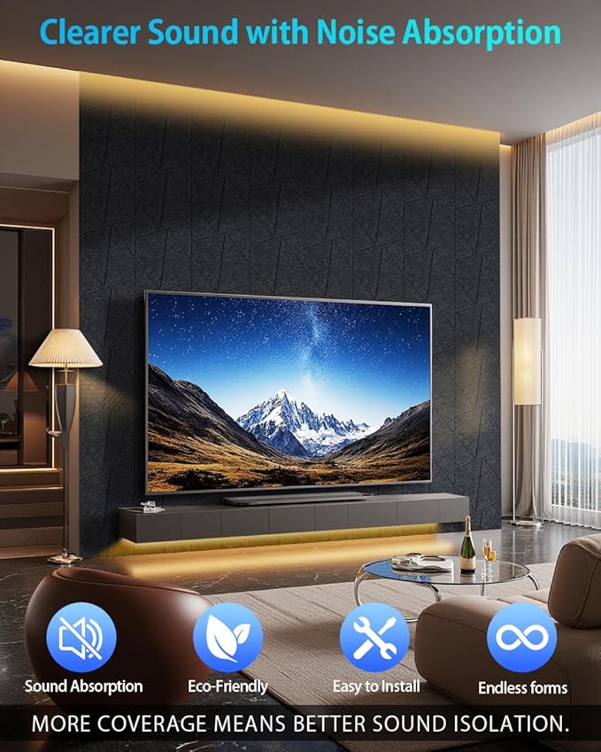 - Elevate Your Entertainment Space: Sound absorbing panels minimize reflections and reverb for crisp movie dialogue and intense game audio. Create an immersive home theater or gaming room experience with sound proofing panels for walls