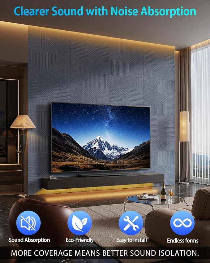 - Elevate Your Entertainment Space: Sound absorbing panels minimize reflections and reverb for crisp movie dialogue and intense game audio. Create an immersive home theater or gaming room experience with sound proofing panels for walls